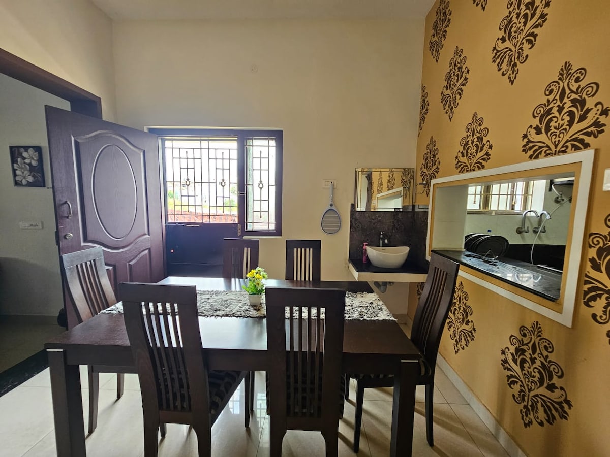 Welcome to our charming house in a quiet village off Salem. This spacious retreat offers a peaceful countryside experience, perfect for families and weekend getaways. Surrounded by greenery and hills provides a picturesque view. There are friendly pet cows and dogs present inside our home for guests to play with. En route to Bengaluru and 20 mins off Palakkad route. Mettur & Yercaud are an hour's drive. Breakfast can be arranged and charges extra COOKING NOT ALLOWED ONLY FAMILIES ALLOWED
