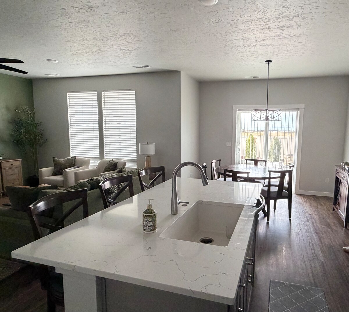 The Modern Farmhouse was recently remodeled with upscale amenities and everything you need for a comfortable stay! Enjoy your own delicious home cooked meals in the beautiful kitchen, gather in the dining room with seating for 8, enjoy a movie on Netflix or Disney+ on a huge 65" OLED 4K TV and 7.2 Klipsch Surround Sound with a large sectional providing seating for the whole family. Outside on the back patio you will find outdoor seating with a fire pit, a hot tub for 5, and a 6 burner BBQ.