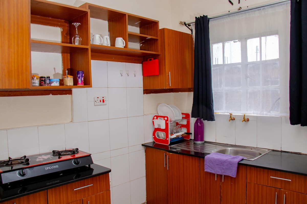 Two-bedroom apartment in a serene and secure neighborhood of Kisumu. It is conveniently located within walking distance to public transport, shopping malls, markets, and places of worship. Tastefully furnished for your comfort with a maximum capacity of five people; it is the perfect place to stay on holiday or business, for family or individual trips, short or long-stays.