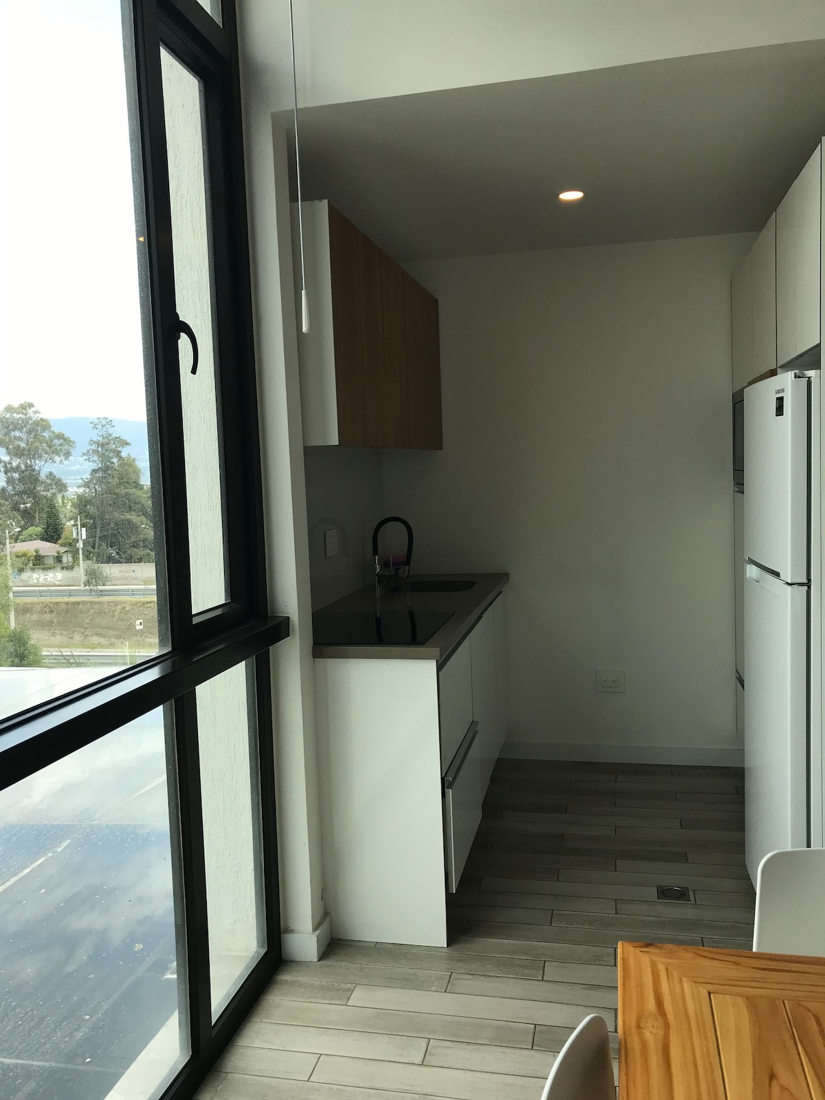 Beautiful modern apartment fully equipped for its debut on the top floor with panoramic view. Inside the luxury Aurora development with the best social areas: swimming pool, soccer, tennis, basketball, volleyball, bike path, squash, cinema, swimming pool, jacuzzi, sauna, Turkish bath, gym, BBQ, game room, children's room, communal room Next to the Ruta Viva, 5 minutes from Cumbaya, a few minutes from the main shopping malls of the valleys, schools, restaurants, surrounded by green areas.