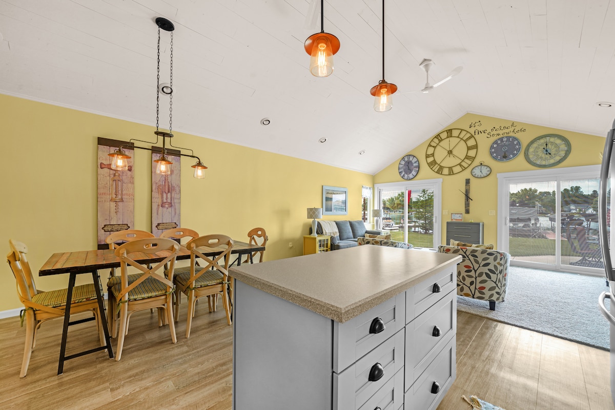 Enjoy some rest and relaxation. The two person hot tub will be running all year long and ready to sooth your cares away. Immerse in the quiet canal views from the screened patio with outdoor heater. Many Wineries, walking trails, and museums locally. UM football fans -just 30 miles to the Big House. Complimentary paddle boards, kayaks and pedal boat.