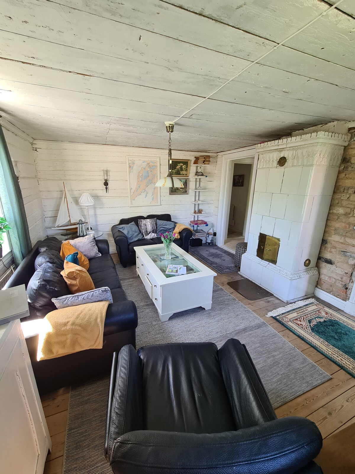 Gammelgården is located 5 km north of Finspång. The cottage is newly built in the old style with moon windows, crystal chandelier and luxurious bed linens. Lake view and dock down to Bysjön, we have a small rowing boat for guests. Borrow bicycles for wonderful bike rides and borrow golf clubs, Finspång has a 27-hole course with pay and play. We (Ingrid and Bill and the cats Tussilago and Pantufa) live on the farm in an old house from the 1750s with separate entrance and parking.