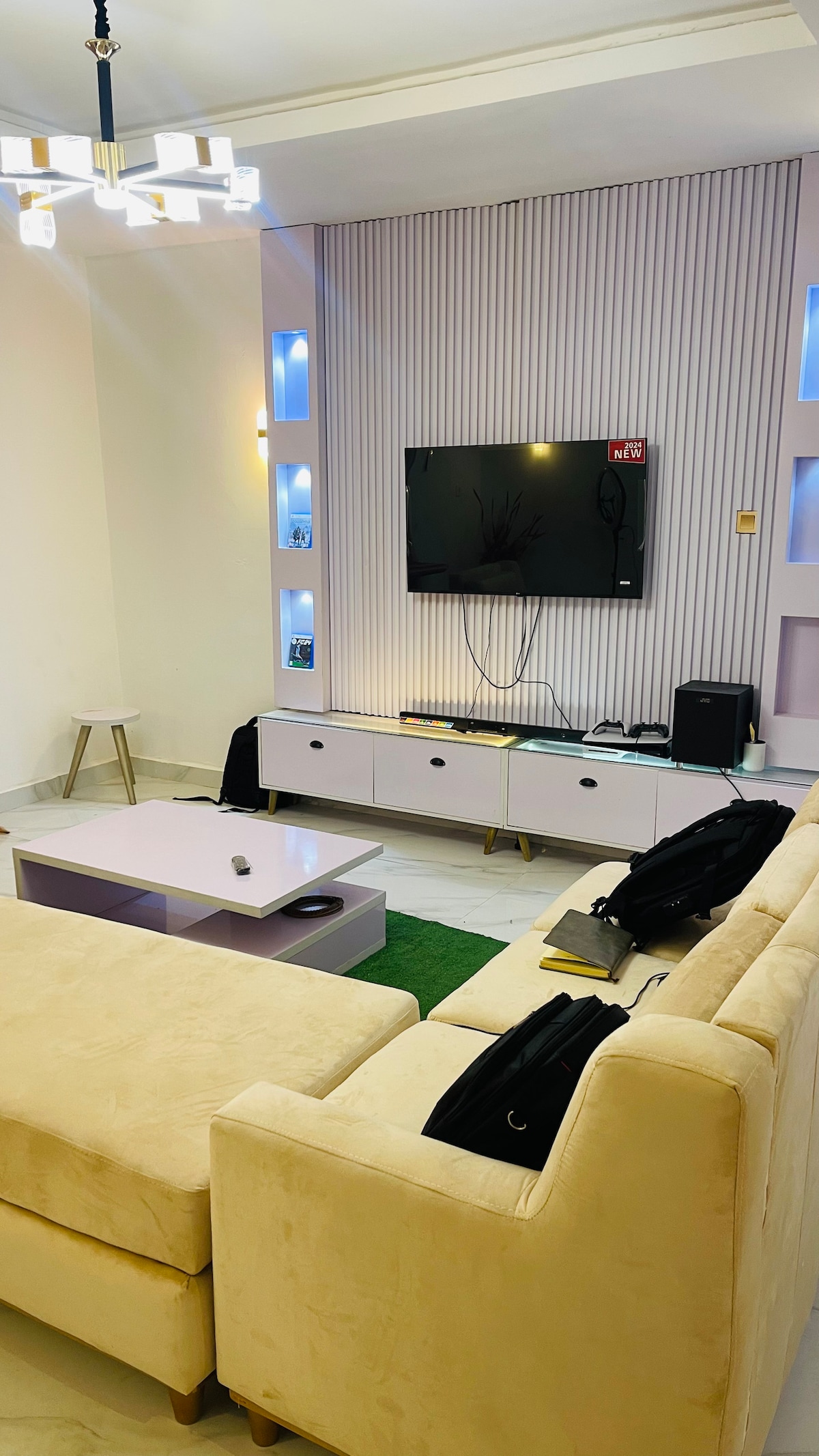Stylish 2-bedroom apartment with a 65-inch smart TV, Netflix, Free Wi-Fi, and a mini wine bar. Enjoy two comfortable bedrooms, a kitchenette with microwave, fridge, gas cooker, and 9 kg washing machine. Located in secure Gaduwa Estate, just minutes from Gaduwa Shopping Plaza, shops, and cafés. Perfect for business or leisure stays, this cozy home combines comfort, convenience and a peaceful setting for a relaxing Abuja experience. We look forward to hosting you. 😊