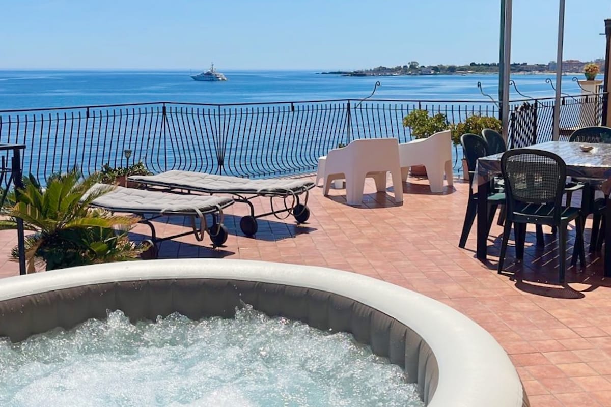 MIRIAM SEA FRONT APARTMENT Terrace Jacuzzi + BBQ is located in the old fishermen village of Giardini and faces the magic sea of Taormina. The apartment overlooks the sea and the beach is just a few steps away. After a day on the beach or a trip on the Etna volcano, you can relax on your spacious furnished terrace in the jacuzzi with a wonderful view on the bay or enjoy a BBQ.