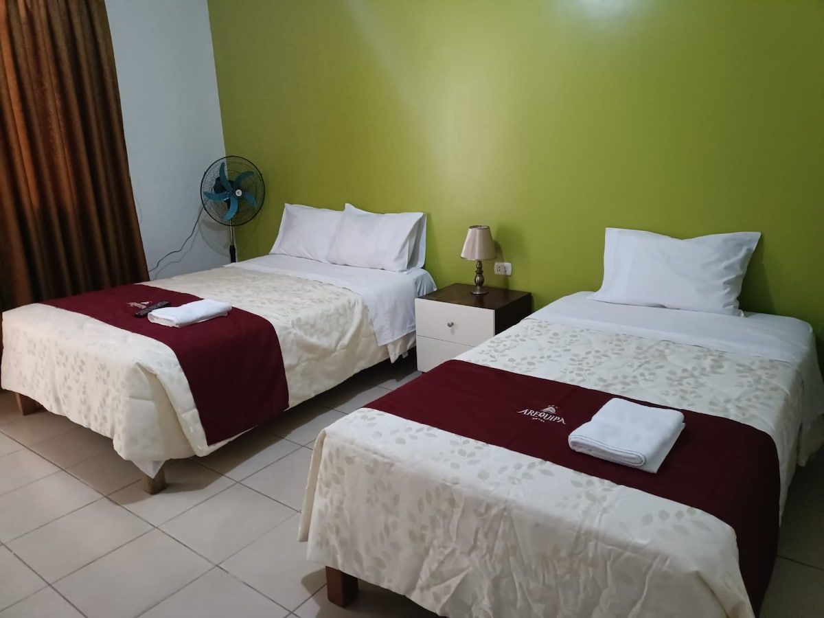 Enjoy a warm and comfortable stay in the heart of Nasca, in a cozy room located in Hospedaje Jumana, a family-friendly stay ideal for travelers. The lodging is located in the heart of the city center, just one block from the Plaza de Armas, surrounded by restaurants, banks, tourist agencies and shops. With a large terrace , lounging areas and a warm atmosphere to share with other guests. Ideal for both couples, families or tourists.