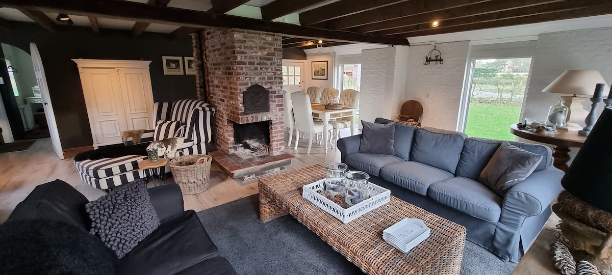 This modern vacation home has all the assets to offer you a great vacation: cozy, comfortable, stylish and artistically decorated, with artisanal tableware, a lovely rain shower, a beautiful private terrace in the countryside. Quiet location in the vicinity of nature reserve de Maten, the bicycle route network, and the Bokrijk domain. You can soak up culture, dine or shop in Genk and Hasselt. The host is a ceramist and is happy to explain her craft in her studio.