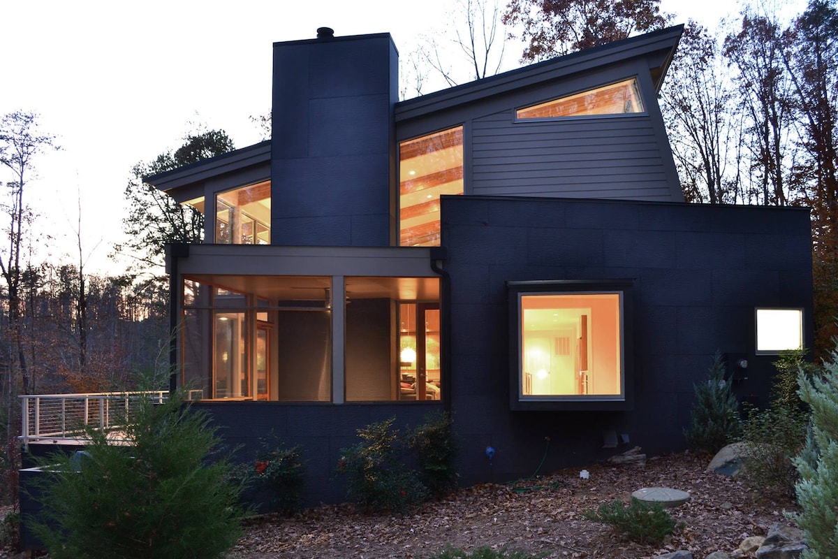 This custom home at the base of Wintergreen is located 40-minutes from Charlottesville. The waterside setting offers views from living, primary bedrooms, decks and porches, as well as upstairs bedroom and balcony. Large glass walls and sliding doors ensure connection with the landscape. A two-person master-bathroom shower with views of the pond is a key feature of the home's sleek and minimalist design. The home is off of the Rte. 151 beer/wine/distillery trail and nestled beside a golf course.
