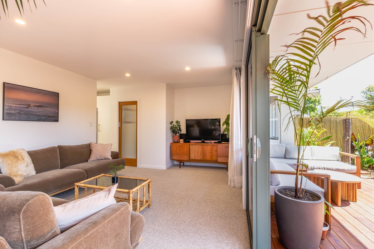 Welcome to a light-filled garden apartment in a charming 1885 villa, with high ceilings, timber floors, and beautiful natural light. The apartment sleeps two and includes an en-suite bathroom. A fold-out chair bed with linen is available for a third guest if needed. Enjoy your private garden with lounge chairs, a BBQ, and seasonal grapes and feijoas — a peaceful retreat just a short walk from the city centre. The airport e-bus stops right outside, making arrivals and departures easy.