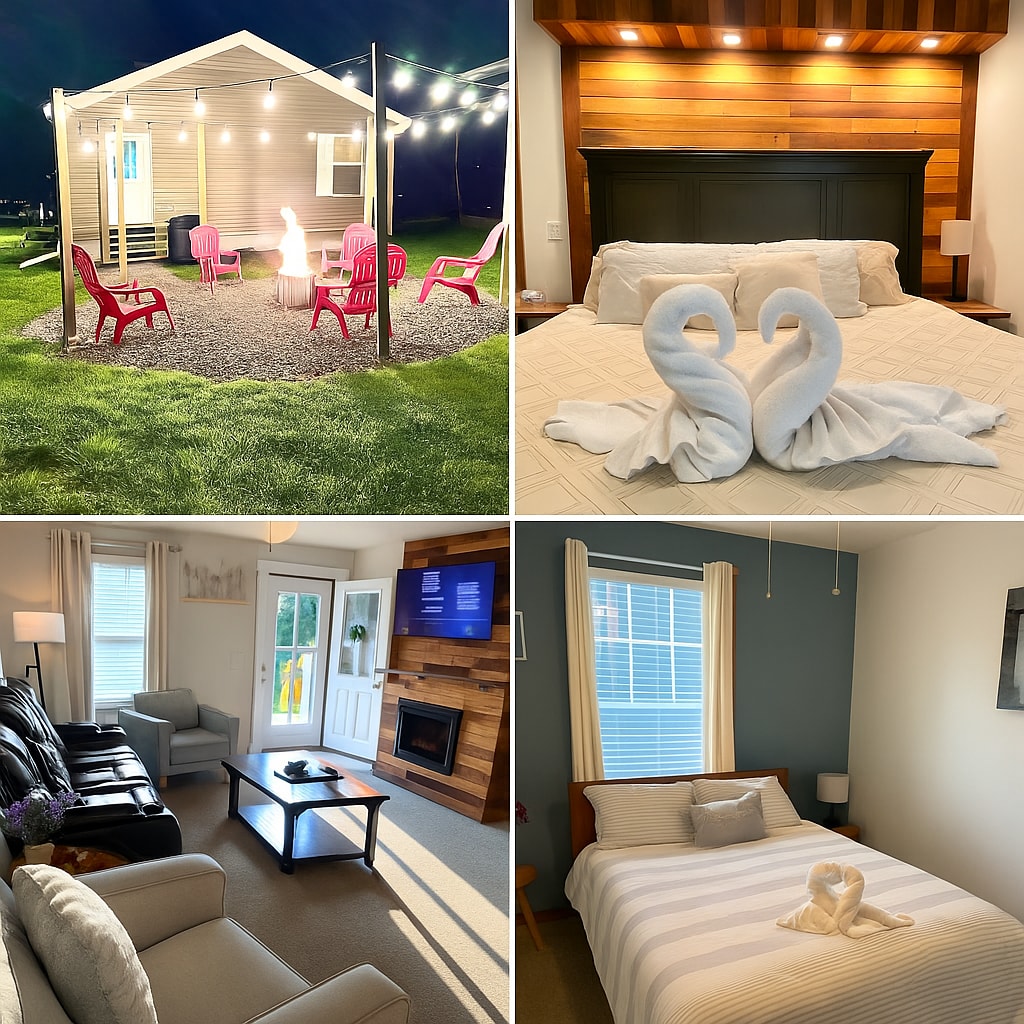 Romantic King Bed, Heart Shaped Hot Tub, Fire Pit