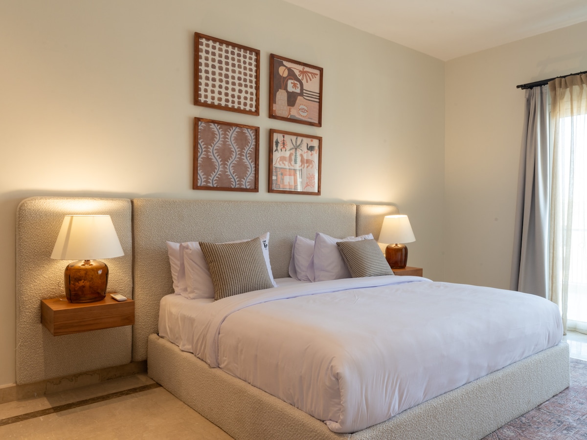 Enjoy your stay with a brand new villa walking distance from swimming pool , gym , supermarket you can book also with us golf car 4 bedrooms villa + extra room for nanny with it’s toilet 2 master bedrooms 2 rooms with common toilet Living room between bedrooms with 65inc smart tv 📺 Reception with dining table for 6 persons Gust toilet Kitchen with built in appliances Bosch table in the kitchen for breakfast Outdoor seating over looking open view landscape Wi-Fi available