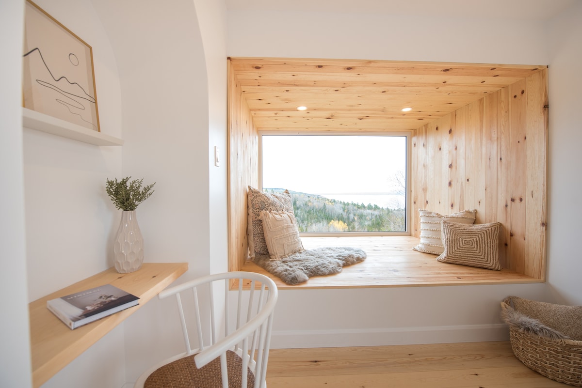 The rifugio is the perfect place to take refuge. A peaceful oasis surrounded by nature and mountains as far as the eye can see. The Rifugio offers you the freedom to make an authentic connection with nature and enjoy quality time alone or with others. As soon as you walk through the door, you are greeted in a warm and comfortable atmosphere. Large windows offer magnificent views of the surrounding mountains and in the distance we can see the tip of Lac Mégantic.