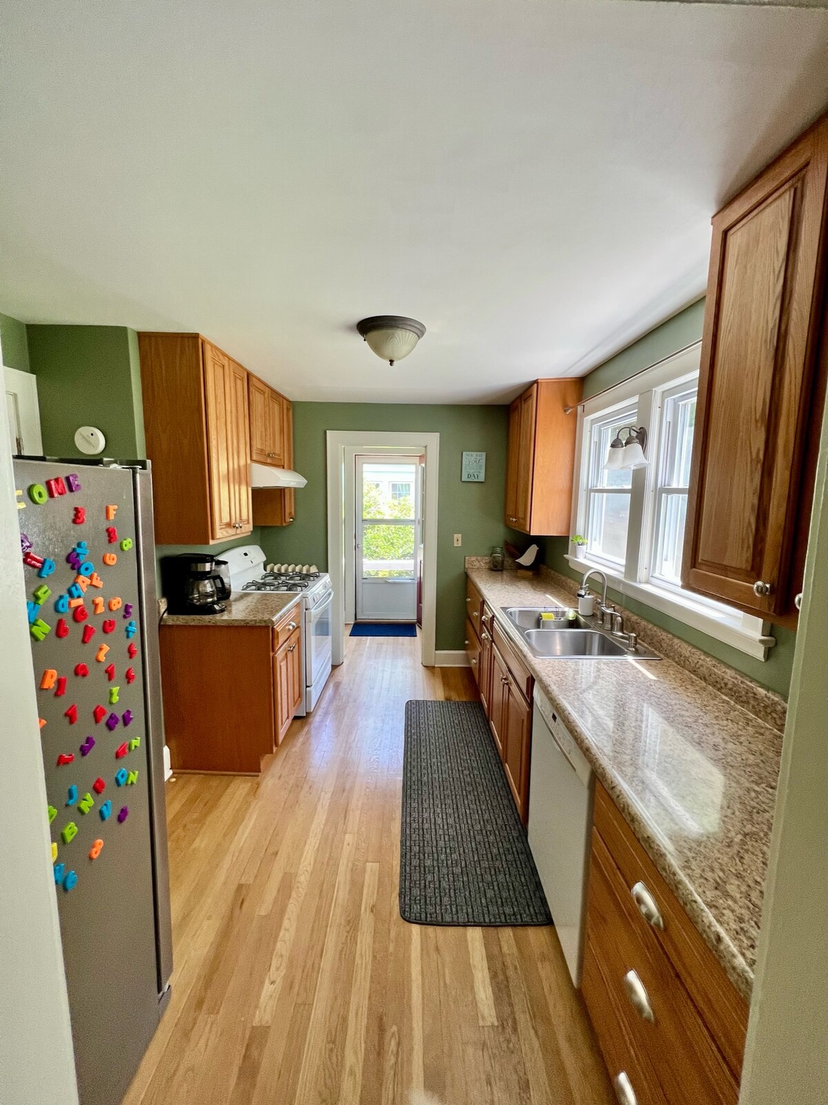 Bright sun filled second floor apartment in a multi unit building. The apartment has one bathroom , two bedrooms the first with a king size bed and the second has a queen. LIving room, dining room, full kitchen with coffee bar. We are a 15 min walk to downtown shops, restaurants, ferries and train station. The home is minutes from the I-95 and we are a half hour drive of the areas most popular attractions. Note there are stairs and a claw foot tub which may make access difficult for some.