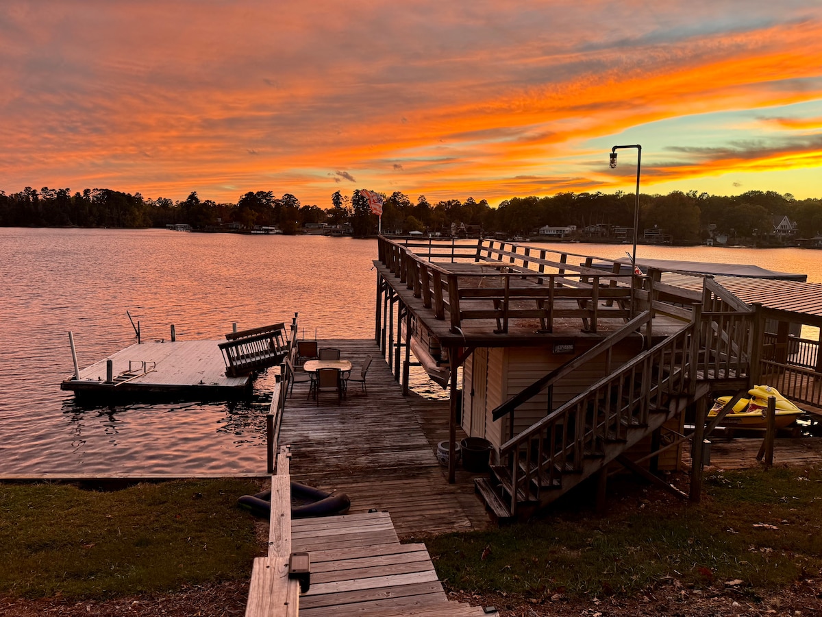 Experience lakeside luxury at our beautiful three-bedroom, three-bath home on Badin Lake North Carolina. Enjoy the stunning views from upper and lower decks, unwind in the outside sitting area, and entertain friends with a game of cornhole or at the outside bar. Dock your boat conveniently and explore the tranquility of the quiet cove. Just a short boat drive to a local bar and restaurant. Our retreat is nestled in the year-round beauty of Uwharrie National Forest. Your lakeside getaway awaits!