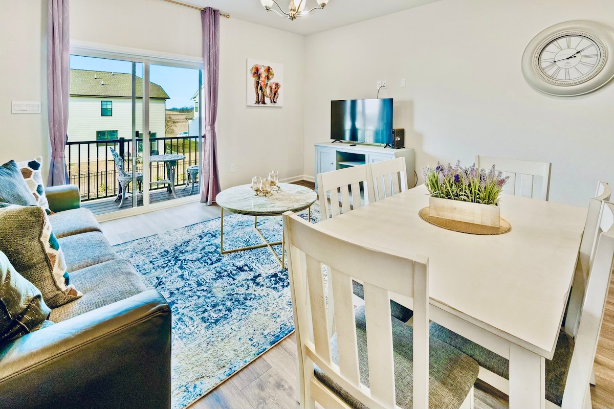 Enjoy this stylish condo located in the heart of downtown's Historic District. The condo resides within a beautiful mansion known as the The Grand Delphey with shared rooms on the first level perfect for photo sessions or gathering. The unit has the ability to rent with 3 other units to SLEEP UP TO 16 PEOPLE! Please let us know if you would like to book the entire mansion for wedding parties or other events. Just steps away from wedding venues, Baker Park, the creek, downtown nightlife & shops!