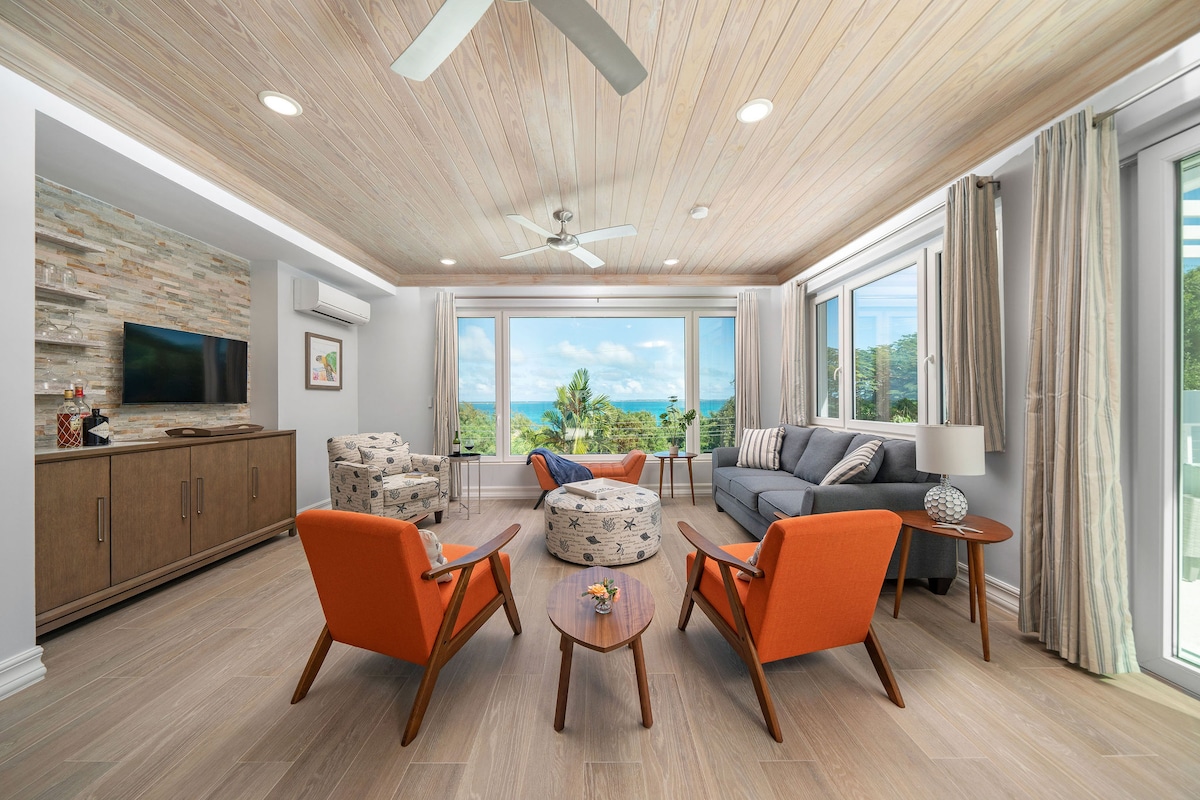 Welcome to Fort View House, a beautifully renovated two-story home nestled atop a hilltop ridge to boasts breathtaking ocean views. Enjoy the convenience of this prime location, just minutes from grocery stores and restaurants, while still remaining away from the hustle and bustle. The home features four spacious bedrooms, each with its own en suite bathroom, and a large chef’s kitchen. Relax by the pool, BBQ in the outdoor kitchen, or unwind on one of the several elegant patios.