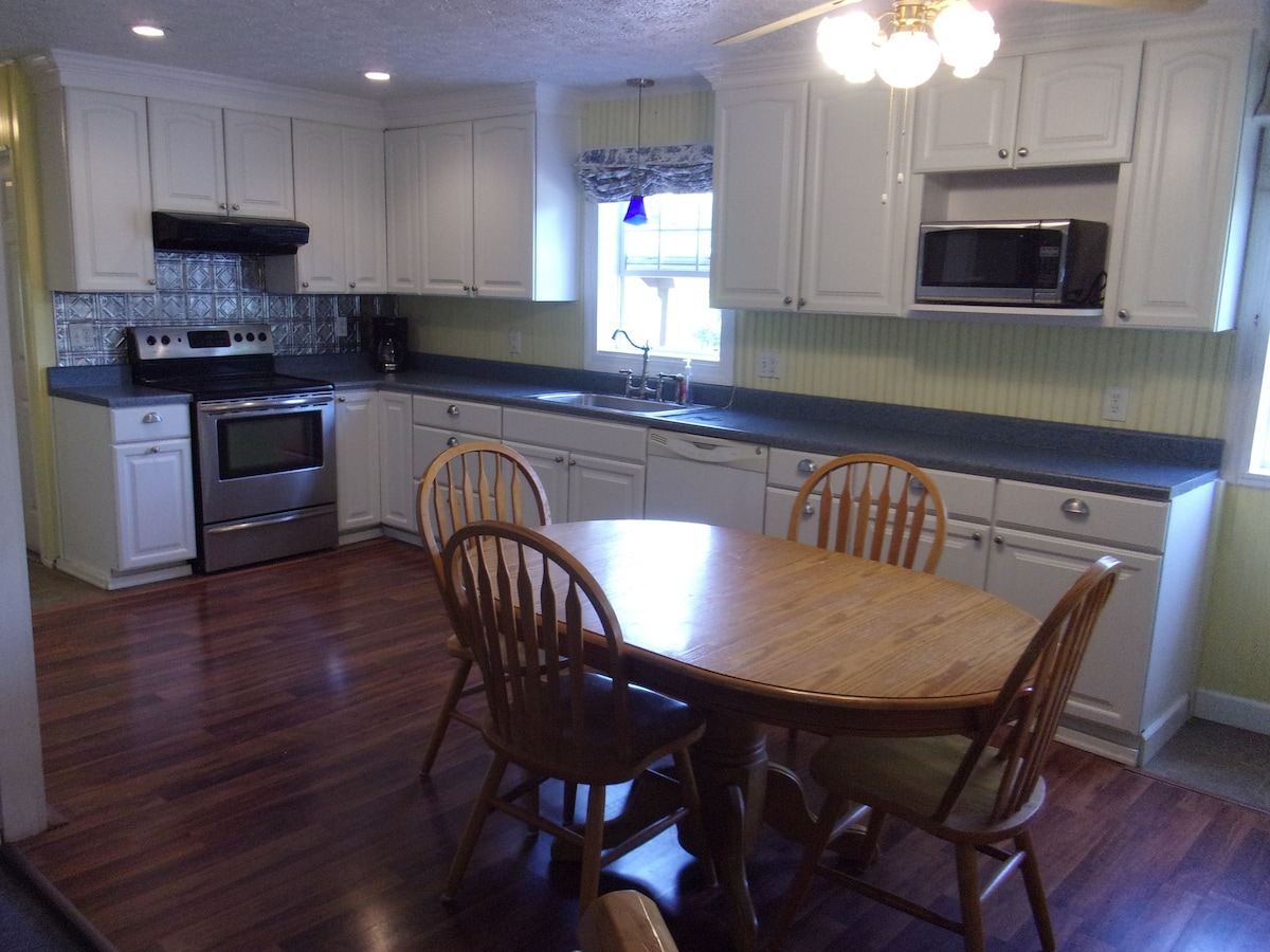 The Walhonding Hideaway is a 3 bedroom home on the Walhonding River. It sleeps 6 very comfortably and a 7th on the couch . While sipping coffee or cocktails on the deck you'll feel as if you are directly on the River. There is a beautifully landscaped bonfire area for nightly fires. You may even see Amish buggies stroll by some mornings. During your stay, consider taking the three rivers wine trail or spending the day in historic Roscoe Village.