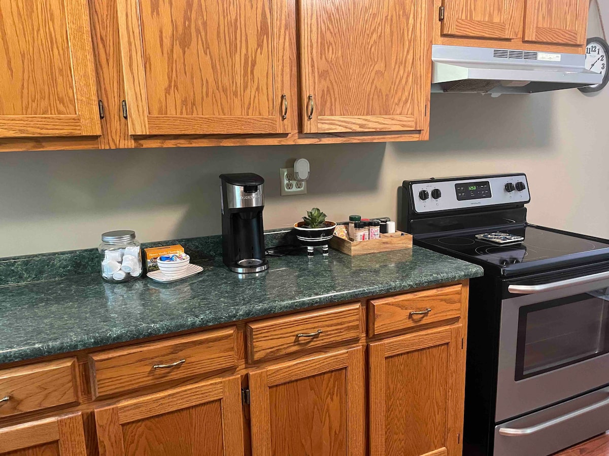 This unique place has a style all its own. It’s a newly remodeled flat with everything you need. All kitchen appliances, washer and dryer, shower and bathtub! All on one floor! Just a short 3 minute walk into downtown Millersburg. Close to the local Brewery and fine restaurants! Millersburg is unique with its antique and thrift shopping! We are a very small walk/ride to the Rails to Trails. This is a trail that runs from Fredericksburg to Killbuck (15 miles) perfect for bikes or walks.