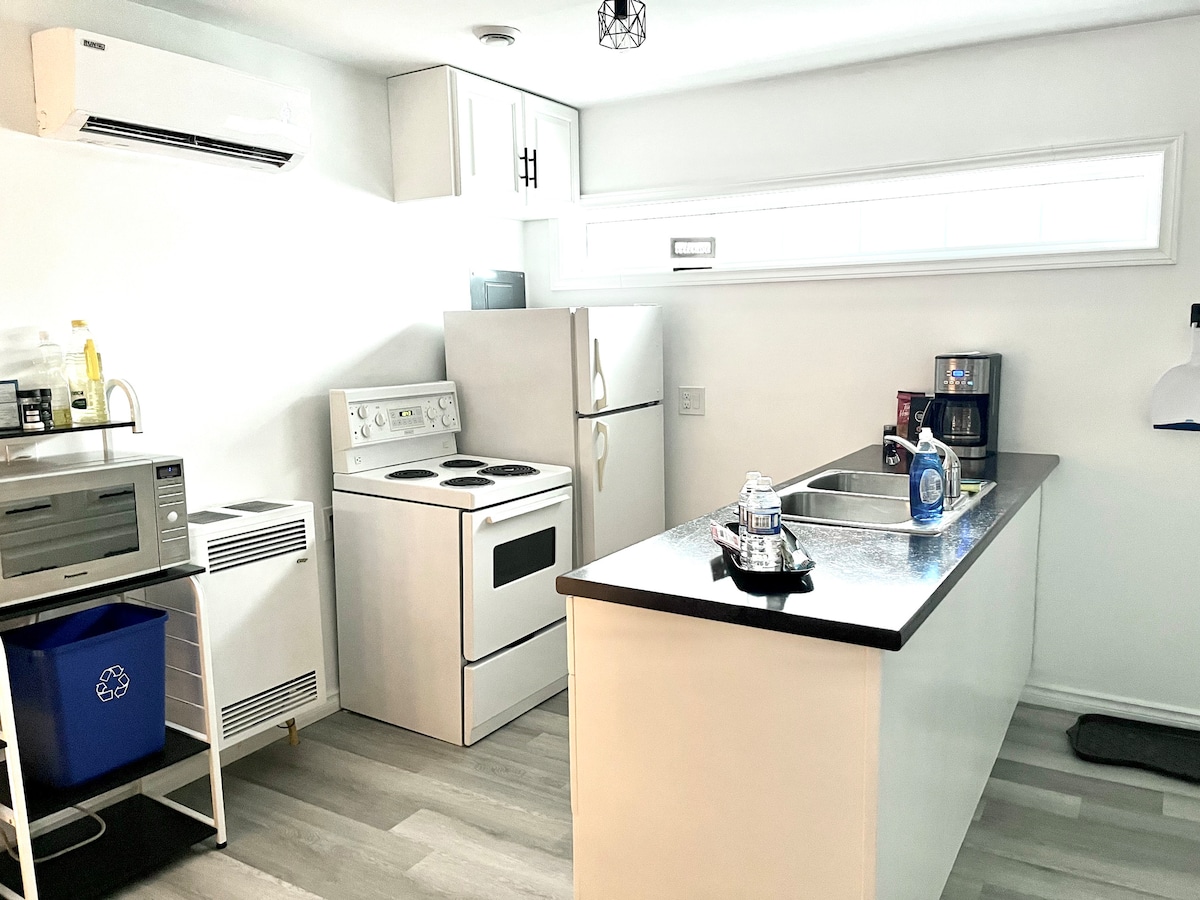 Between the falls and Wine Country. Quiet neighbourhood, close to everything! Detached unit-studio, newly renovated space. One queen bed + one pull out sofa, full kitchen. Explore the region. Centre to Niagara on the lake (wine country), Clifton Hill, Casinos, waterparks, Outlet mall/shopping, Hiking, bike trails. Niagara Gorge, Whirlpool Golf + a lot more! (Maps show more detail) Public city bus stop out front 100metres Go train station 15 min walk away / 2 min drive. One parking space.
