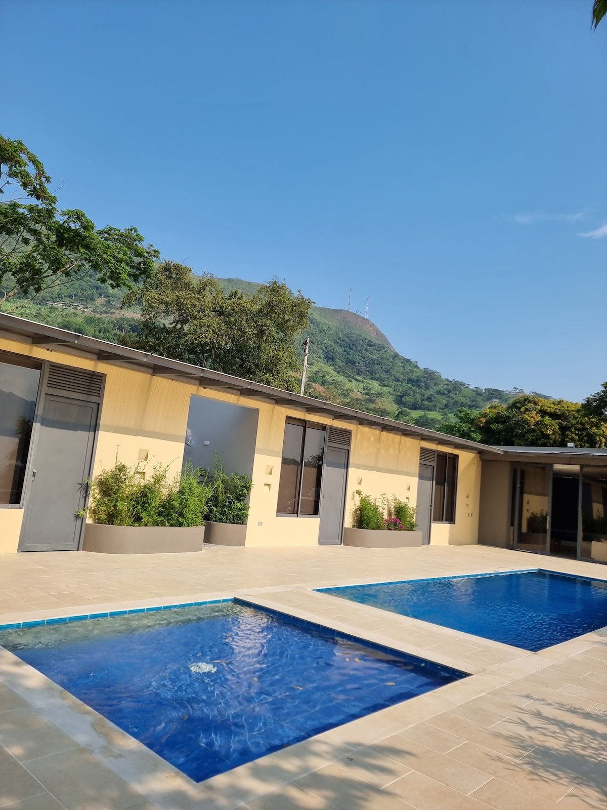 It is a property at your disposal with two beautiful lakes, good topography, an excellent view, pure nature, and trails to explore where you can appreciate fauna, nature, and enjoy a quiet stay with your family or group of friends. 3 bedrooms, 4 bathrooms, living room, dining room, large sofa, equipped kitchen, gas grill, swimming pool for adults and children, sun chairs and tables, TV, Internet, parking. Via Villeta-La Vega 8 minutes from the main highway. 20 minutes from downtown.