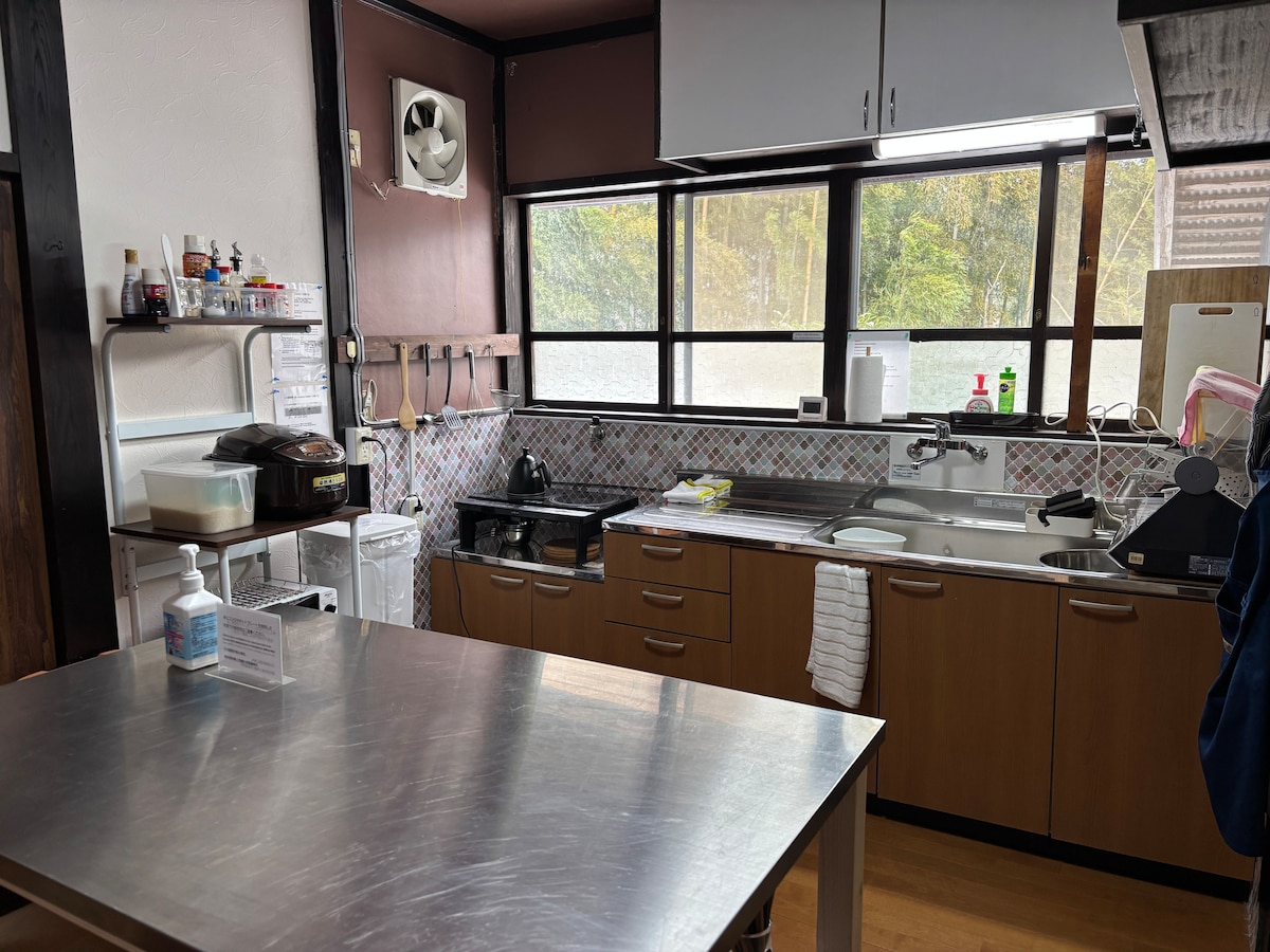 Traditional private house completely renovated for a group up to 5 travelers [No extra charge per number of travelers]. Are you looking for traditional Japanese housing with modern equipment? Search no more! Our house is equipped with an IRORI, a traditional Japanese sunken hearth / fireplace. In past days, this type of fireplace was very popular but they are now very rare. The house faces the local forest; it is a perfect place for those looking for peace and quiet moment.