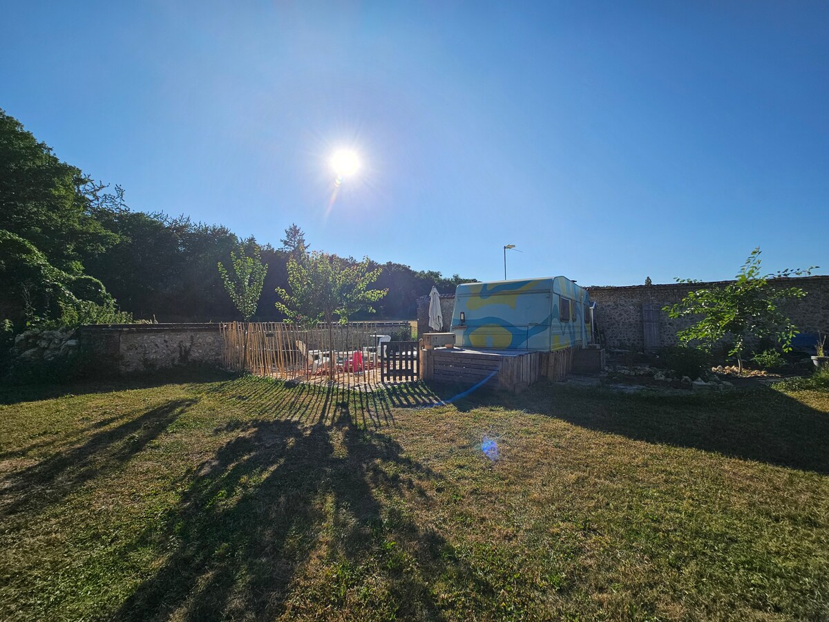 Enjoy the sound of water and nature when you stay in this unique place. Our carefully restored vintage caravan welcomes you to enjoy a nature bath. This cozy little nest will give you the comforts you need to enjoy the charming Heronchelles Valley and its unspoiled nature. On site you can enjoy the calm and rest, ideal for a real break but also to practice various nature activities that can be carried out on site and nearby.
