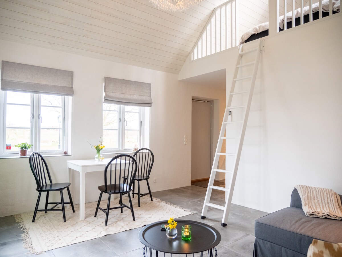 Renovated (2020) cozy guest apartment of approximately 35 sqm in an old former pig house in the middle of Österlen with unobstructed views of the wide fields. Hammenhög is the nearest village. (2.5 km away) The apartment is adapted for two people. Open-plan with social area, kitchen with dining area with space up to the sleeping loft where the loft staircase leads up to the double bed. Toilet with shower and heated floor. West-facing patio outside the entrance. In the kitchen, there is a stove, oven, refrigerator, coffee maker, kettle and cooking equipment.