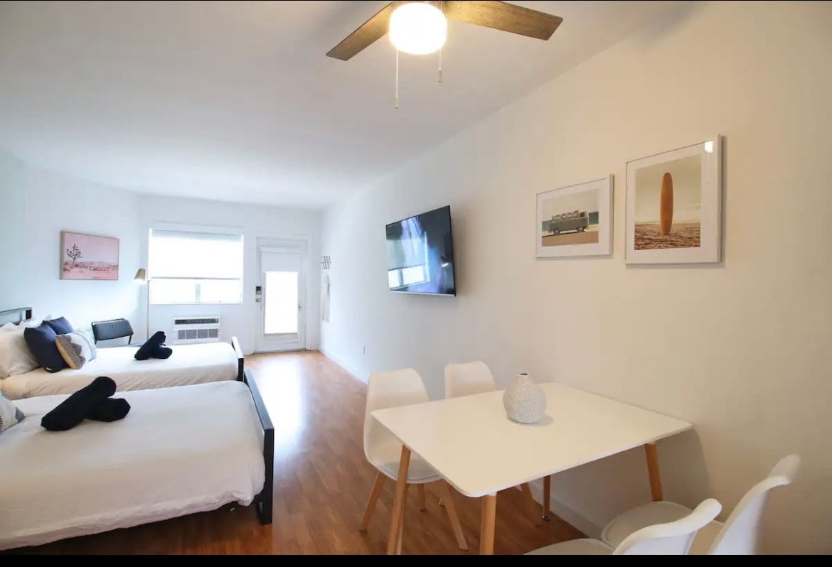 Welcome to your coastal getaway in North Miami Beach! Just one block from the sparkling shoreline, perfectly blends comfort and convenience. Unwind in a cozy bedroom with a plush queen bed, a Kitchenette, and a Smart TV for your entertainment. Enjoy meals at the dining room table, stay cool with air conditioning, and connected with high-speed Wi-Fi—ideal for work or leisure. Experience a relaxing, fun, and memorable Miami Beach stay. Free on-site parking (first-come; not guaranteed).