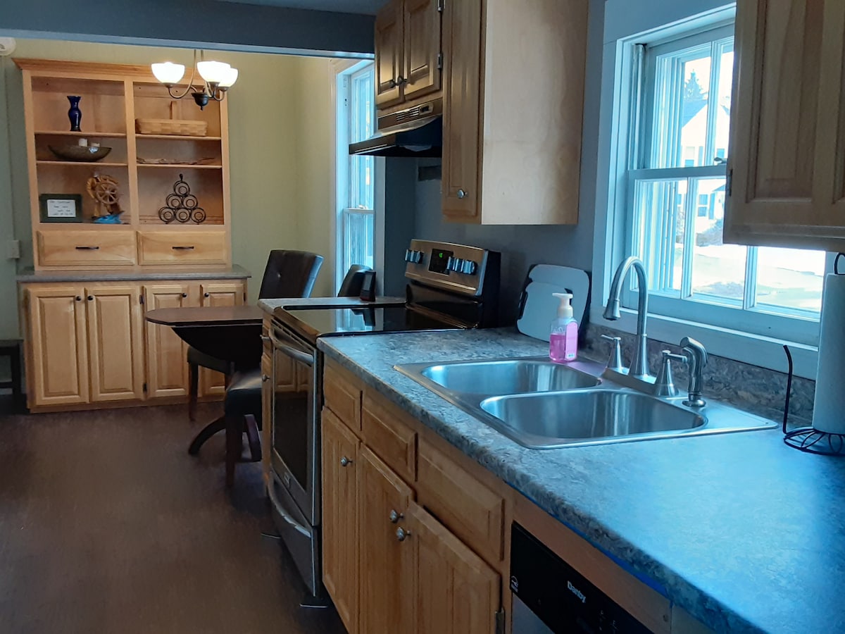We have an open, airy studio apartment with a queen bed, twin bed, and twin trundle under the twin, private bathroom and full kitchen, located approximately 25 miles, or about a 40 minute drive, from Acadia National Park. Pets are welcome as we have a small fenced in area in the backyard. Bring home a lobster and cook it in the fully furnished kitchen.