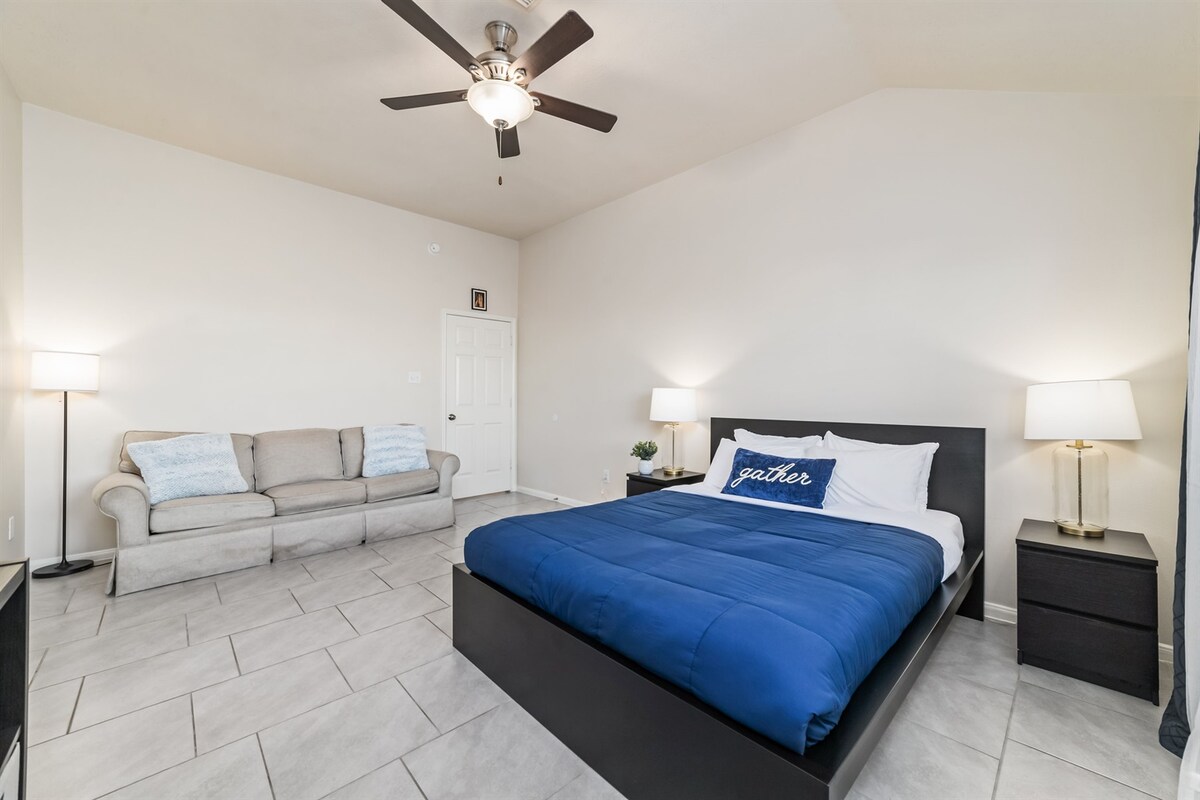 Enjoy a perfect getaway in a cozy, modern and updated house located on a lot of more than a 1/4 acre with a 9ft deep pool, wet bar, spa,grill and lounge area. Beautiful and colorful night lights with lots of privacy in pool and patio area. The house is spacious and comfortably sleeps 10 people . 😊 with state of the art brand new furnitures, beds and mattresses. House comes with all appliances including washer, dryer and 3 smart tv's and equipped with high quality linen and kitchen essentials.