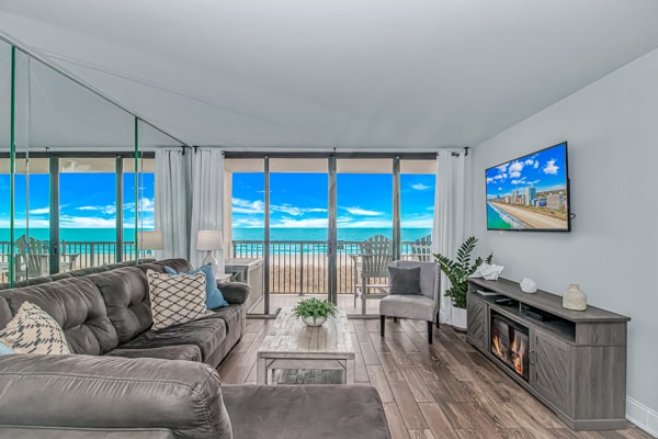 A bright, modern oceanfront retreat where everything feels simple and comfortable. Enjoy open views, a clean design, and an easygoing space made for slowing down by the sea. Top 5% rated in Myrtle Beach 🌴 Oceanfront Luxury — Seawatch Resort 1003 North Tower • 🌊 Floor-to-ceiling ocean views that make the beach feel front and center • 🛋 Bright, modern living space designed to feel open, simple, and comfortable • 🛏 Private bedroom with a comfortable king bed for restful nights • 🍳 Fully equ