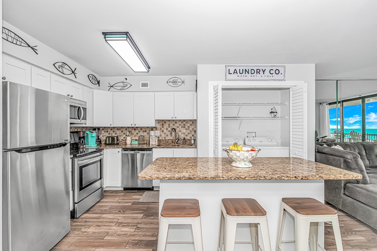 Direct oceanfront king bed, W/D & free coffee bar