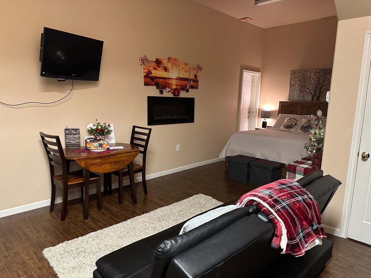 Cozy & comfortable for a few days, weeks, or months. Starter Breakfast & pantry items are included in your stay at our peaceful 12-acre property. You'll have easy access to a host of activities nearby depending on t, such as the Chena River, Chena Lakes Recreation Area, aurora viewing, dog sledding, snow machining, the Santa Claus House, museums, and more. There's always something fun to do! Located 22 min. from the airport, 8 min. to the Badger gate of Fort Wainwright & 19 miles to Eielson AFB.