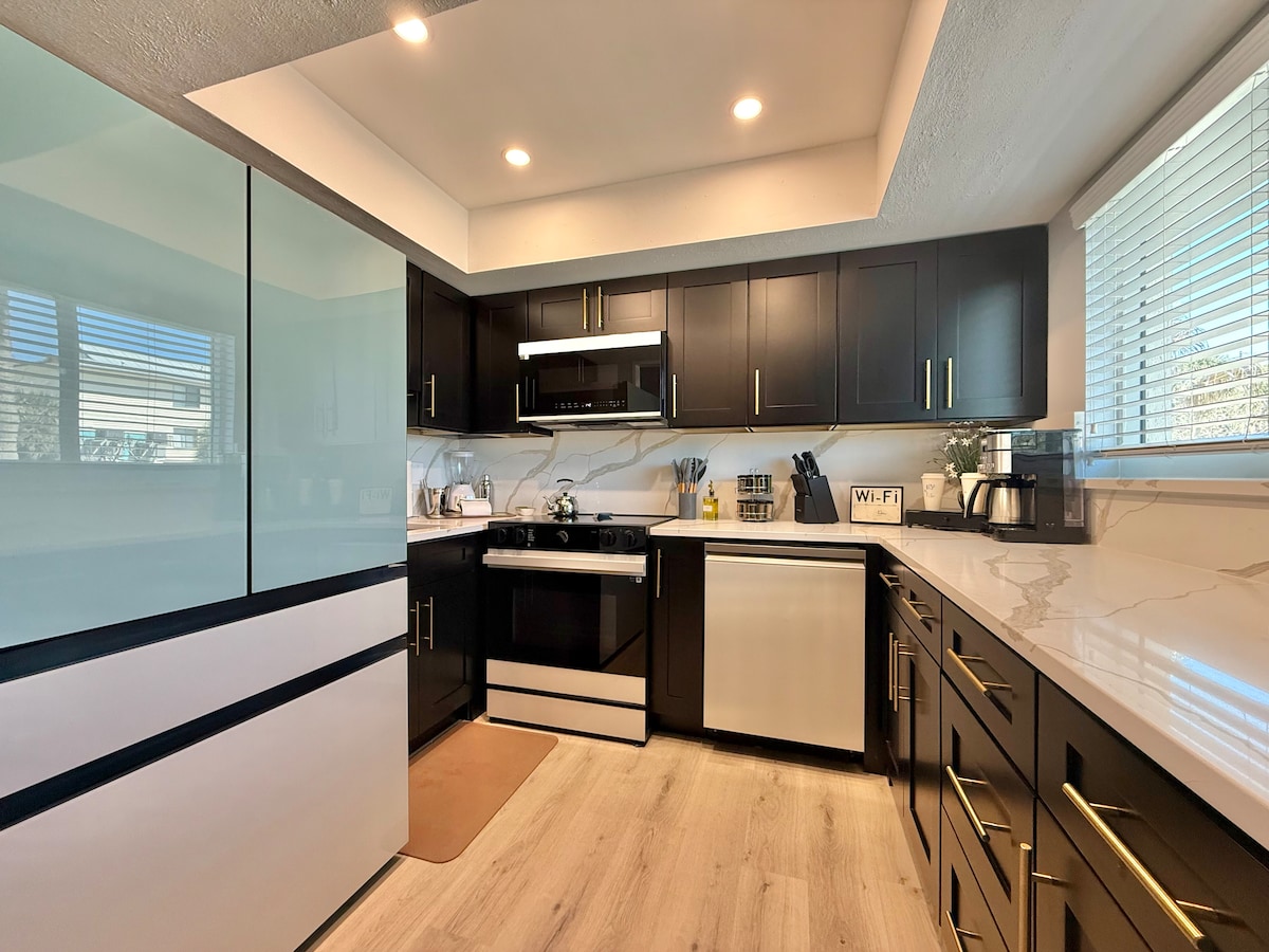 Welcome to your modern escape! This beautifully designer unit of a brand-new 2025. Blends sleek style with everyday comfort. Inside, you’ll find a spacious open layout, a fully equipped designer kitchen, and stylish modern furniture throughout. Unwind in the cozy living room with a large smart TV and fireplace, or retreat to the master bedroom with its own smart TV and private bath. Two additional bedrooms offer plenty of space for family or guests.