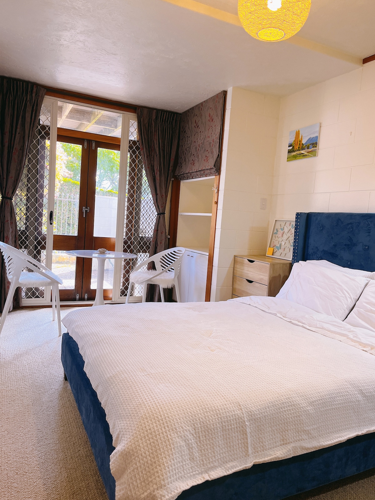 A full day of travel calls for a relaxing nights sleep. This private one bedroom sleep out built only couple of years ago has all the amenities for you to wind down and call it a day. With modern bathroom, air conditioner, bar fridge, smart TV and a Comfy queen bed to spend the evening watching YouTube, Netflix or stream on your device with unlimited fibre internet. Contactless check in and check out, quiet settings, close to the airport and motorway.