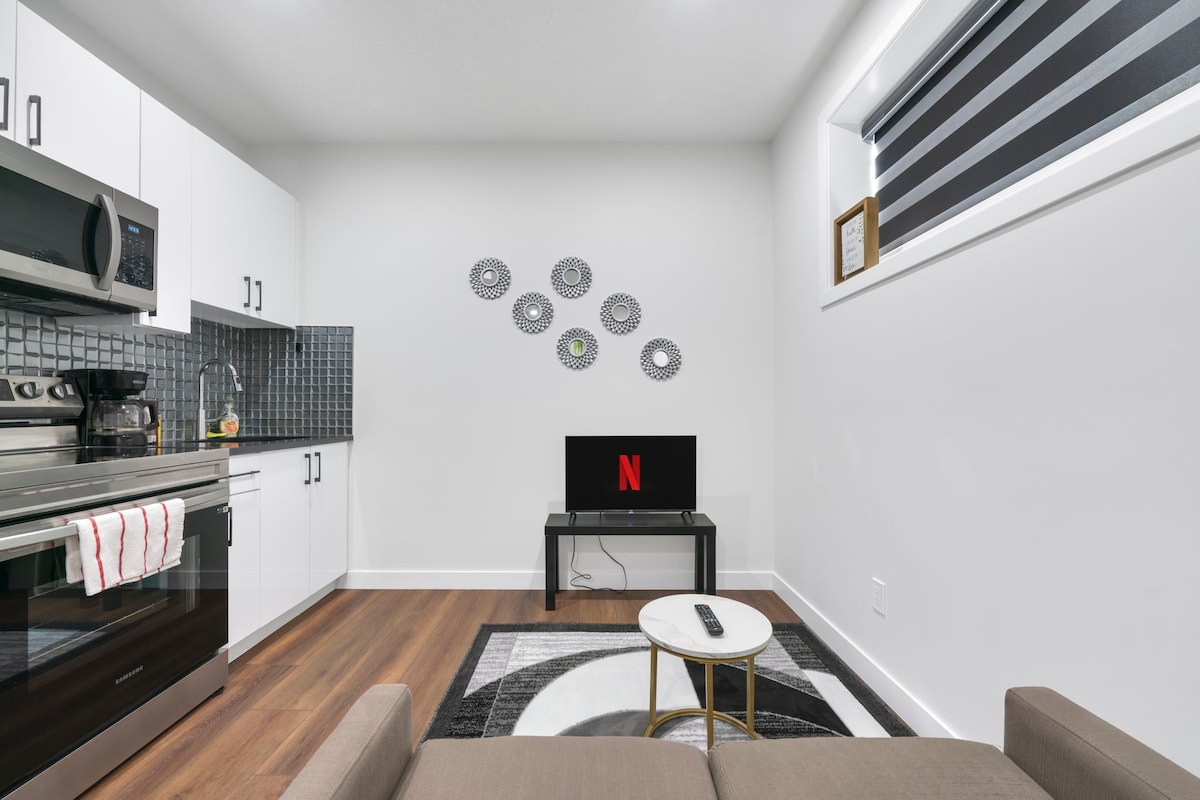 Welcome to our charming, standalone above-garage apartment suite nestled in a brand-new build in arguably the best neighbourhood in North Edmonton: Griesbach. Enjoy a blend of modern comfort and cozy ambiance, perfect for a relaxing getaway. All the basic amenities you need, this cute and comfortable space is your ideal home away from home. Kick back and relax in this calm, stylish space. Close to the Henday, shopping, and gorgeous walking paths. 15 min drive to downtown. Book your stay today!