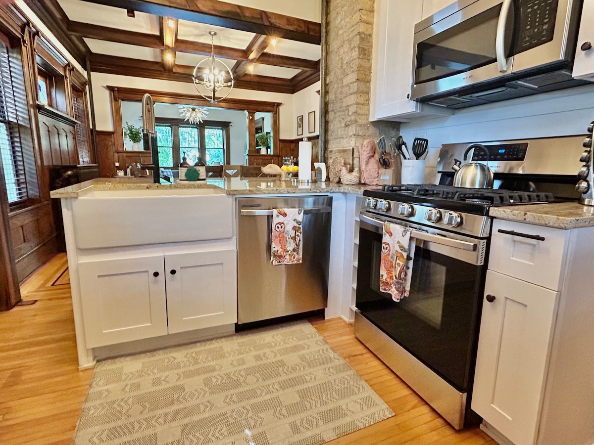 Welcome to my new home and Airbnb listing with fresh updates. Cleanliness & your comfort is my priority for every guest! I live on the 2nd level, separate unit with separate entry. Treat yourself to the elegance of a by-gone era while staying in this modernized, classic 1900 home featuring mid-century décor, high ceilings, original hardwood floors and central air. Updated amenities include off street parking & EV charging (14-50 outlet 40 amp). Enjoy entire, private, fully stocked main level.