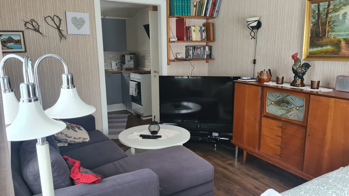 Small apartment with private bathroom, bedroom, living room and kitchen, sofa bed in the living room if there is a need for more sleeping space. Parking is just outside. Immediate proximity to hiking trails/ski slopes, mountain trips, midnight sun in the summer and northern lights in the winter right outside the door. Walking distance to the Botnhamn-Brensholmen ferry connection
