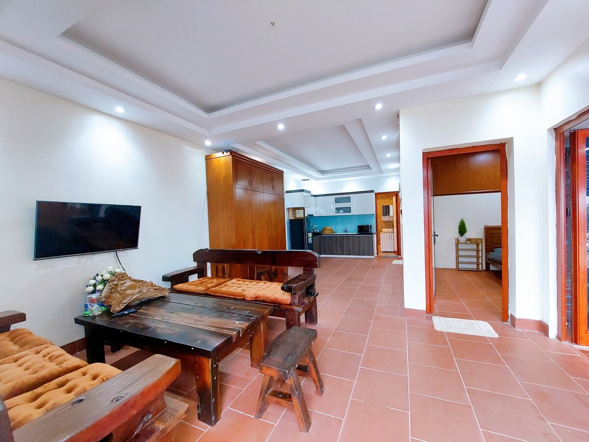 PHU LAM VILLA - Living room, spacious kitchen with standard facilities (fridge, induction stove, steam fan, bowl of chopstick, cups,...) - 2 double rooms, 3 single rooms with a maximum capacity of 24 people - 6 fully furnished self-contained toilets, shower gel, dryer,... - Team building yard, outdoor dining with portable tarpaulin to cover the rain sun - Free scissors, charcoal grill ☆Standard: 14 people, max: 24 people ☆Surcharge from the 15th person: 200k/person; children from 6-10 years old: 100k/person; free children under 6 years old