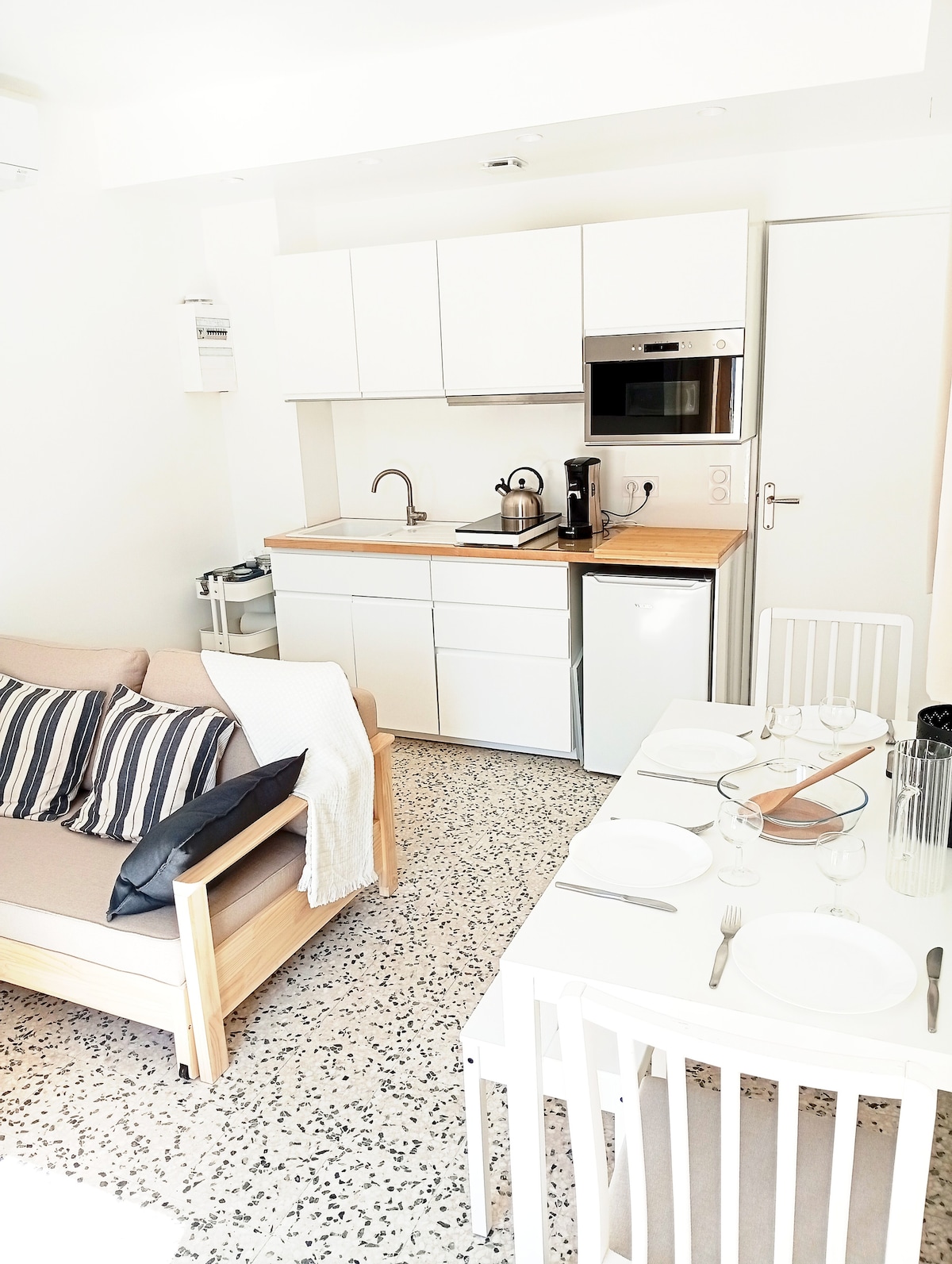 Large 35 m2 studio in Noves "Tomette", in the Alpilles, just 10 minutes from Saint-Rémy-de-Provence, located in a building classified as a historic monument overlooking a quiet courtyard. Completely renovated in 2023, it is equipped with all modern comforts for a pleasant stay. Ideally located in the center of the small Provençal village of Noves, on a quiet street, between St Rémy and Avignon, within walking distance of all amenities and major sights. Highway access 5 minutes away.