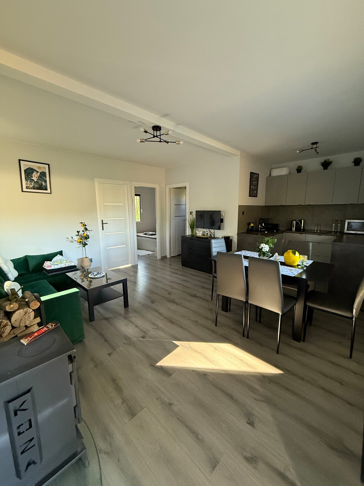 Are you looking for a home where you can relax and spend some quiet time? Then you've come to the right place! Dybki is a place where you can spend a quiet time with your family and enjoy nature! Nearby there are attractions such as a river, kayaking, forests and many more. There are also grocery stores and an expressway nearby.