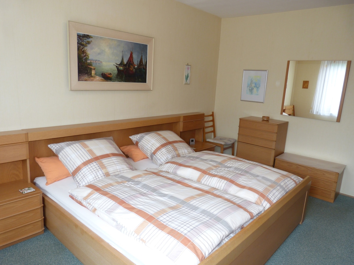 The two separate apartments have their own entrance and are accessible through their own staircase. The 2 apartments are equipped with several bedrooms, living areas, a private kitchen, a spacious bathroom and an additional guest toilet. The apartments offer a total of about 80 square meters of living space. The location is in a quiet settlement. All attractive tourist spots are relatively easy to reach - such as the old town, trade fair and playmobil land.