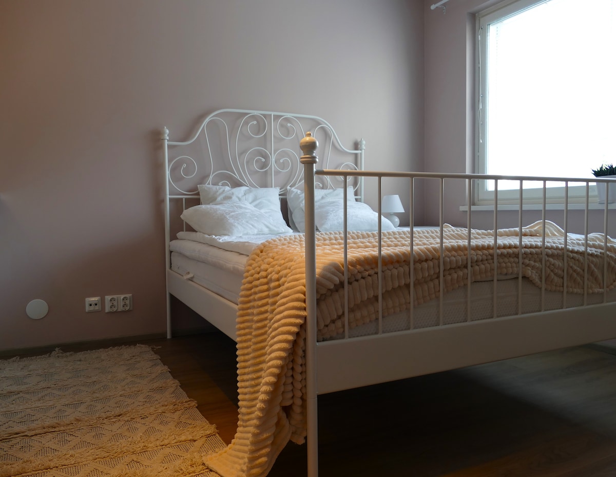 In the center of Seinäjoki, in the immediate vicinity of summer events, but quiet, just completely renovated stylish two-room apartment. A short walk to everywhere... *Downtown 900m * 800m to the Arena *Oma SP Stadium 1.6km. *Railway station 1.2 km *City Theater 300m *Ideapark 3.1 km. *Joupiska Ski Resort 2km The apartment has a bedroom, a large double bed. Extra bed only by separate arrangement. Everything necessary for two people (+2) Kitchen seating for four Dishwasher. Parking space.