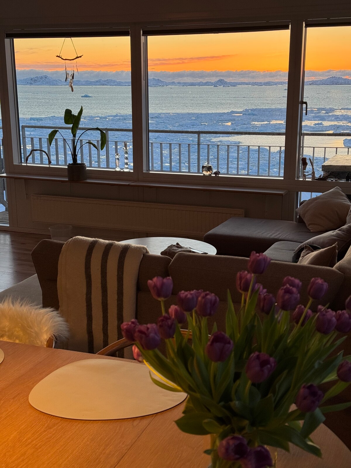 Here you get a cozy and practical apartment with the most important things for your stay. Perfect as a starting point for exploring the city and Greenland's nature. From the apartment there is a fantastic view of both the sea and the majestic Greenlandic landscape. You can enjoy the sight of the iconic Sermitsiaq mountain, the calm blue sea and the beautiful Hjortetakken on the horizon - a perfect backdrop for both relaxation and photography. We can't wait to welcome you!