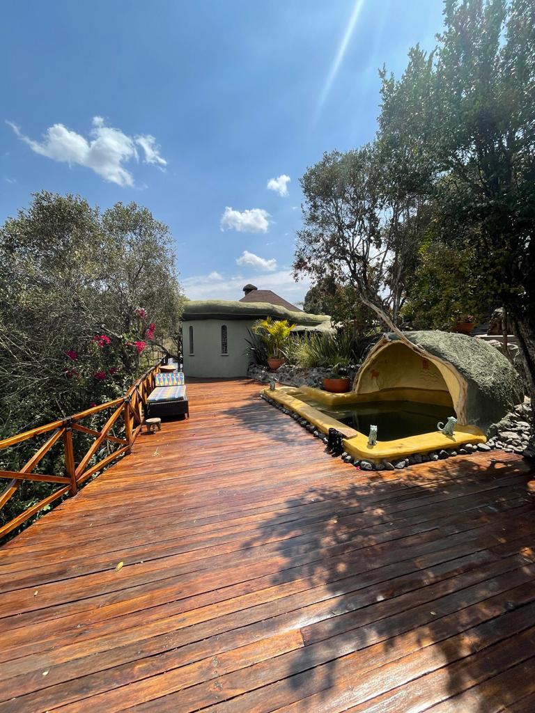 Welcome to a place of serenity, where you can relax, enjoy great moments on the deck with a beautiful view of Mt. Kenya and wildlife at the waterhole below and in the thicket beneath. A completely off grid green home with a welcoming bush-lodge interior. For the more adventurous, go on a game drive with our house keeper, or a game walk with our guide or horse riding with prior notice? or simply relax by the plunge pool and get fresh pizza made to your liking in our Gaudi-style pizza oven.