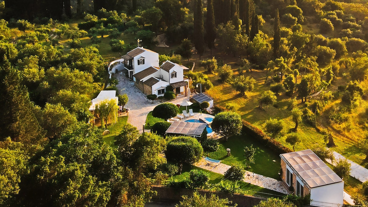🏡 PLEIADES is a 230m2 villa with 4300m2 olive trees garden in green and peaceful Poulades, Corfu. High speed Stalink internet Enjoy your private swimming pool with views of the sea, mainland Greece, and Albania. Just a 7-minute drive from the nearest beach in Gouvia. Perfect for a relaxing stay close to nature and Corfu’s charm.