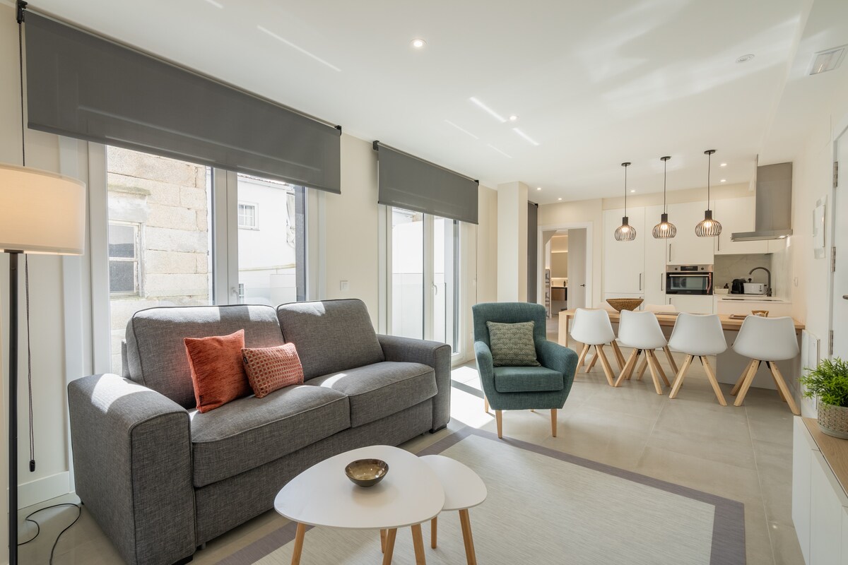 This 110 m2 two-story accommodation consists of 3 bedrooms, 2 bathrooms, and a living room with a dining room next to a fully-equipped kitchen. It has a small terrace overlooking Rúa Real. Located in the heart of the monumental area and surrounded by places to eat and to visit the city on foot. Free parking in the Zona Monumental parking lot, a two-minute walk away. To spend a few days on vacation, for work or as a pilgrim, rest from the hard walk.
