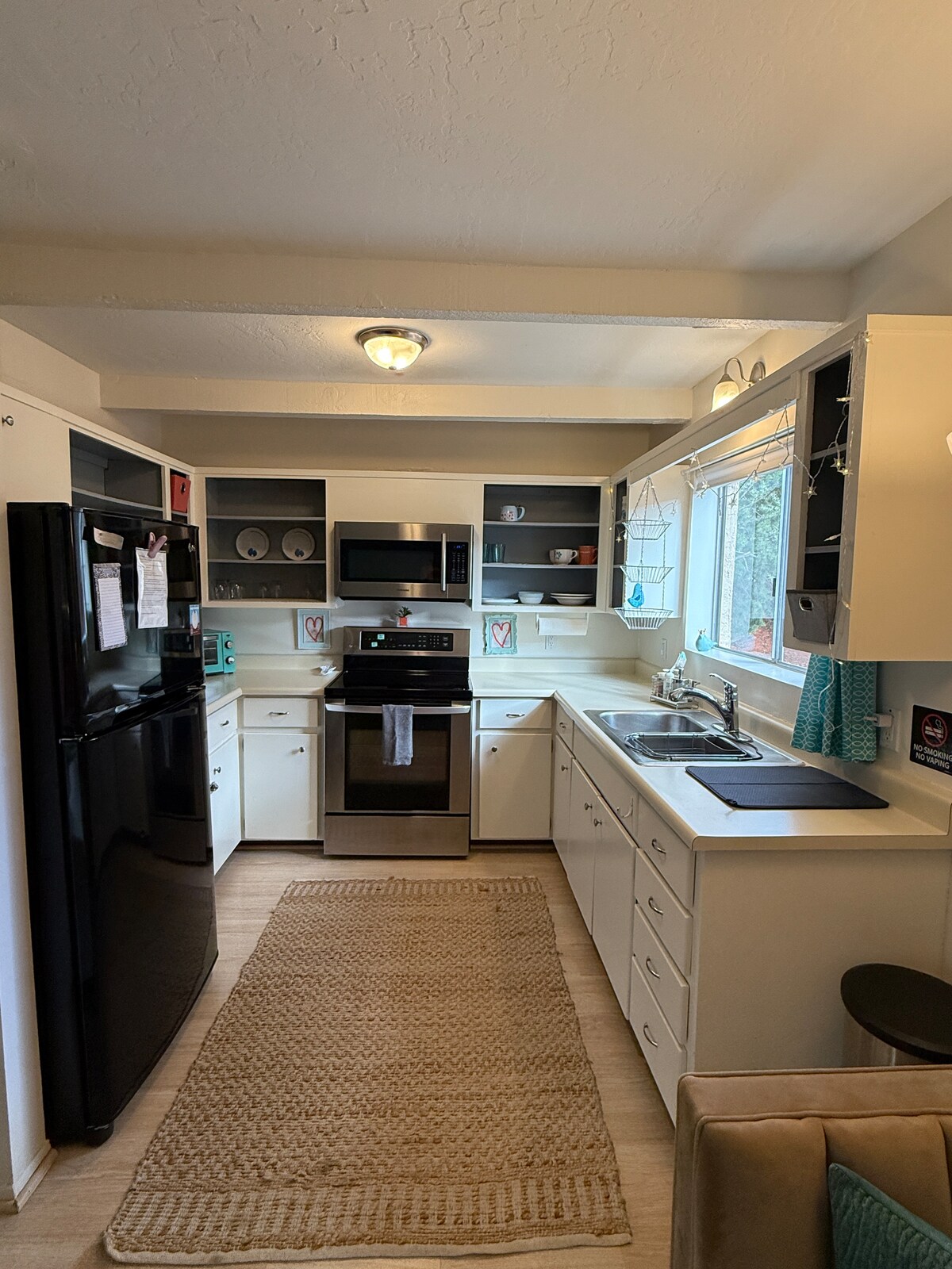If you looking for a tranquil place in Sedona near downtown, then look no further. Close to restaurants, grocery stores, hiking, biking, shopping, parks and so much more. The neighborhood is very quiet and nice. Dogs and cats love the area as well! In the master bedroom you’ll see a king bed. The bathroom is just around the corner. There is a wonderful kitchen with everything you’ll need to cook a meal. The living room is amazing! The couch is so comfy especially next to the fireplace!