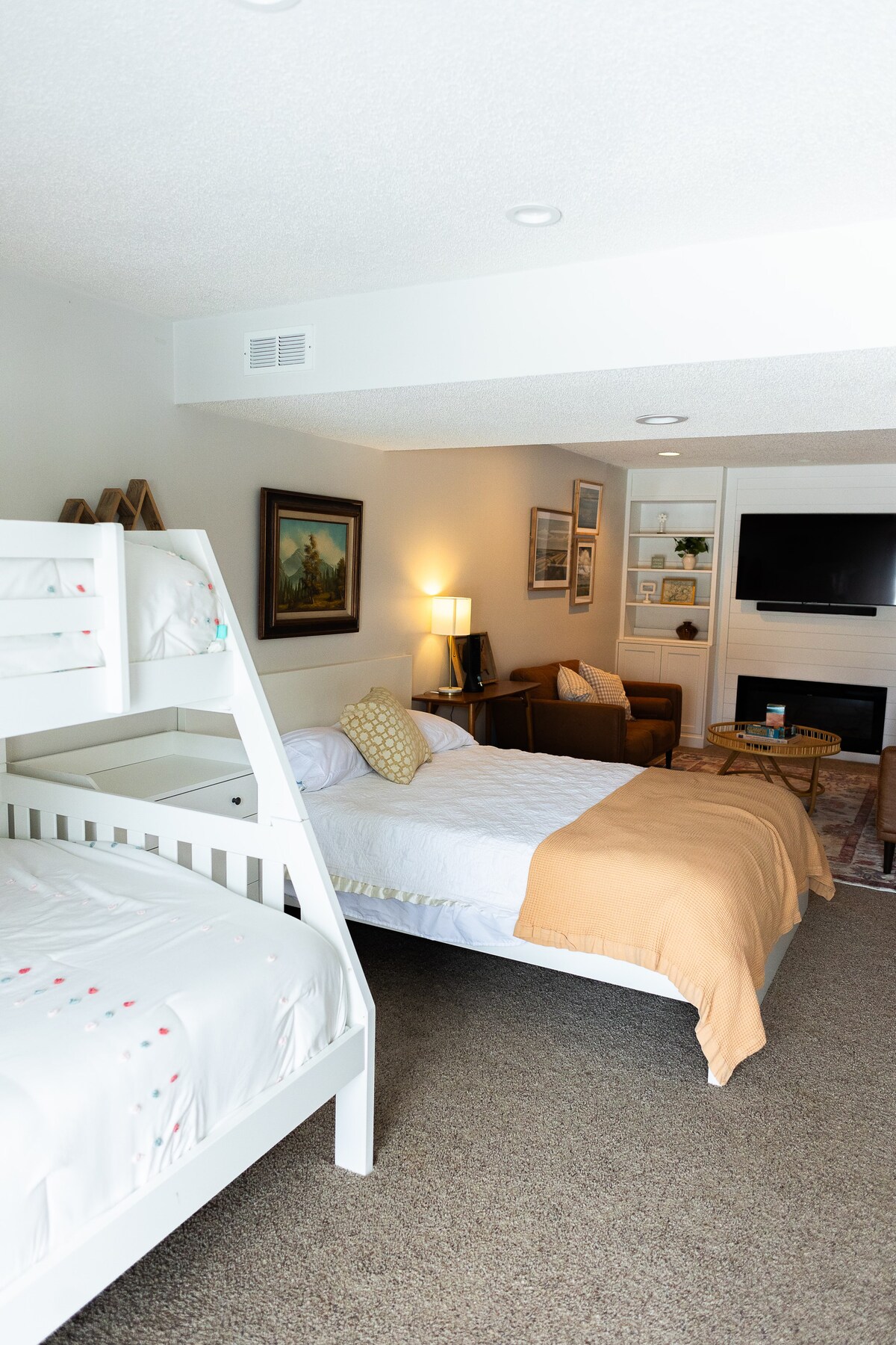 Step into a private and cozy space. Relax watching TV in bed or on the couch. This place is part of our walk out basement, so you may hear day to day living upstairs. For your safety there is a Ring camera installed at the entrance and will light up the entryway when it’s dark. Parking is on the well lit public street. Easily walk up our dedicated Airbnb sidewalk, no steps, walk around to the back of the house. You’ll be in a serene space that makes you feel right at home.