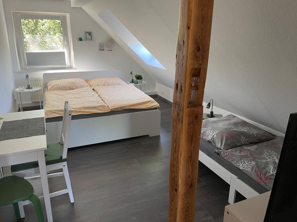 About 15 minutes walking distance from Elberfeld train station and city center, the separately accessible apartment is located in the DG of our two-family house, surrounded by gardens and close to the edge of the forest. It has Wi-Fi, sat TV, DVD player DVD player and parking on our property with private charging facility (wallbox 22 kW) for electric cars. If other check-in/check-out times are required, please inquire in person.