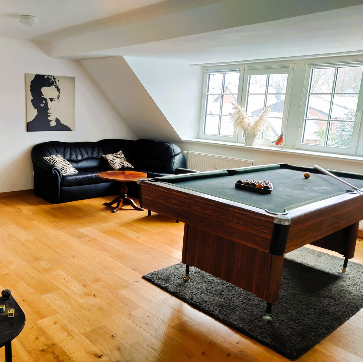 We rent a separate, approx. 60 m² loft apartment / house with private entrance in the annex of our over 100-year-old house to guests who want to stay "differently"! The apartment is self-sufficient + separate from the main house. A private terrace or a private garden area belong to the apartment. Around the house are forests and fields, here you can walk or cycle on the Roman Lippe Route. The Ruhr area (Duisburg, Essen) is close. Supermarket, pizzeria + pharmacy are on site.
